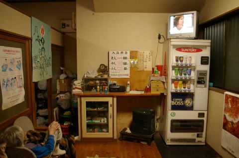 開けると、やはり民家風。コンクリのたたきがあって、プラスチックの靴棚がある。番台やフロントといったものはなく、正面の椅子に毛布に入った女将が横たわって、テレビを見ている。400円を渡す。1.jpg)