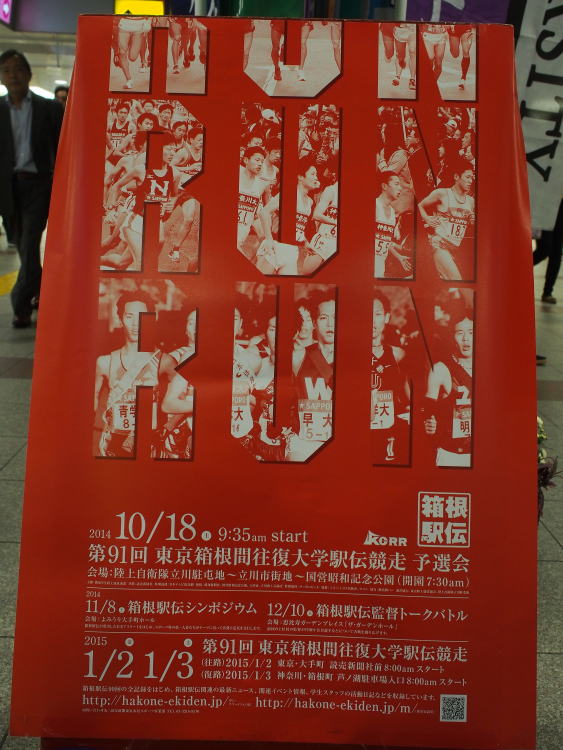 10月18日、正月の「箱根駅伝」の出場権を賭けた予選会が立川昭和記念公園で行われるようだ。駅のコンコースに各大学の幟が立てられている他、商店街の街灯にもペナントが下げられている。本戦への出場は夢だろう母校の幟もあった。