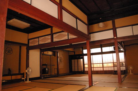 ![]() 「抜き柱」柱を抜いて、大広間に使える凝った造り。 |