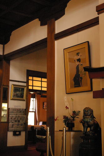 ![]() 序の舞の上村松園の絵など美術品が多数掛かっている。 |