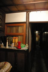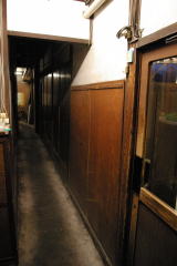 ![]() 緩衝地帯の流し。流しも仕切りも湾曲した凝ったもの。 鏡にある「金沢テレビ商会」というのも歴史的な商号。 |