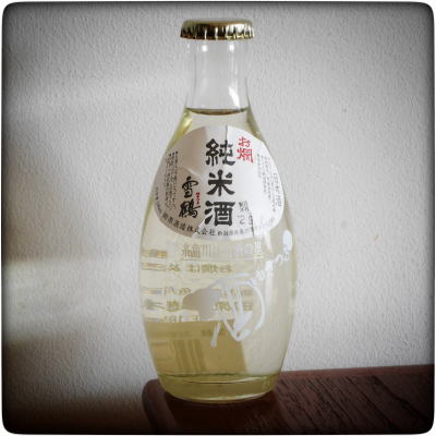 新潟県糸魚川市押上は、田原酒造の純米酒『雪鶴』のお燗瓶。“糸魚川は美酒の里/酒ゆきつる”と白で記された瓶は雁木のある雪国を彷彿させる美しさと気品がある。県内産米を65%まで磨いた純米酒の味はあっさりとした上品な味だった。 (2017.03.15.記) |