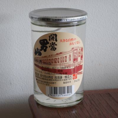 福島県南会津郡南会津町中荒井は、開当男山酒造の『開當男山』。会津鉄道線の車輌が描かれている。この11月に瓶詰めされたフレッシュな酒。透明な中に上品な甘さとしっかりとしたコクがある濃厚な旨口の酒だった。享保元(1716)年の創業。創始者の3代目渡部開当(はるまさ)の名がそのまま銘柄名となっている。以来14代、300年にわたって寒冷地を生かした独自の酒造りに取り組んでいる。 (2016.12.20.記) |