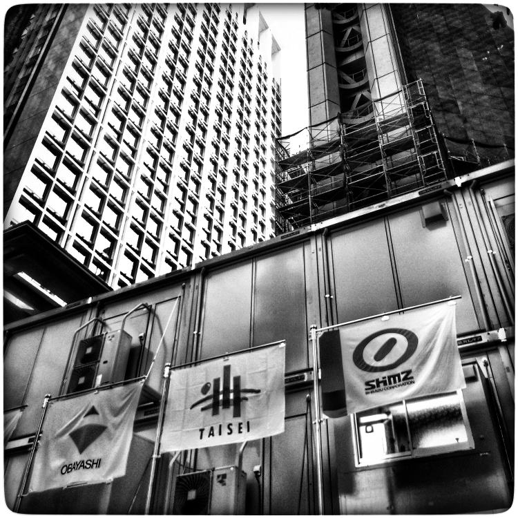 大林組、大成建設、清水建設。この3社の旗が並ぶ現場はそうはないんじゃないかなぁ。そんなに力ずくで解体しなくても。村野藤吾設計、旧日本興業銀行本店ビル。