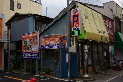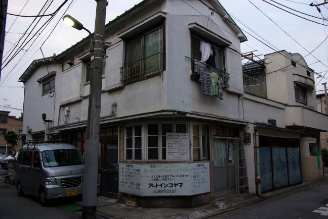 ![]() バルコニーがあるお宅。後方にタカラ湯の煙突が見える。 |