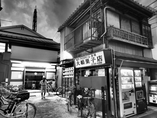 | 銭湯外観 | 2016.08.27. | 大鳥居 | 京急花田空港線 | 竹の湯 | マンション銭湯ながら油井型の煙突があって、建物の横には薪が積まれていた。 |