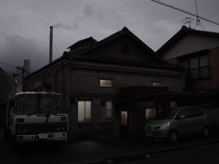 切妻の倉庫のようなシンプルな形の建物。後方のステーで支えられたパイプ煙突からは、薪を燃す細い煙が上がっている。今日は冬至。そして強烈に寒い雨降り。工場地帯に隣接していることもあって、周囲の風景は何処か殺伐としている。そんな中の銭湯の煙。細い煙だけど、一気に気分が和む。