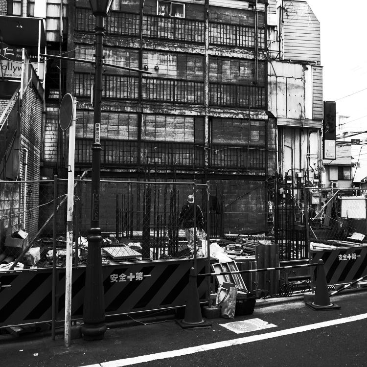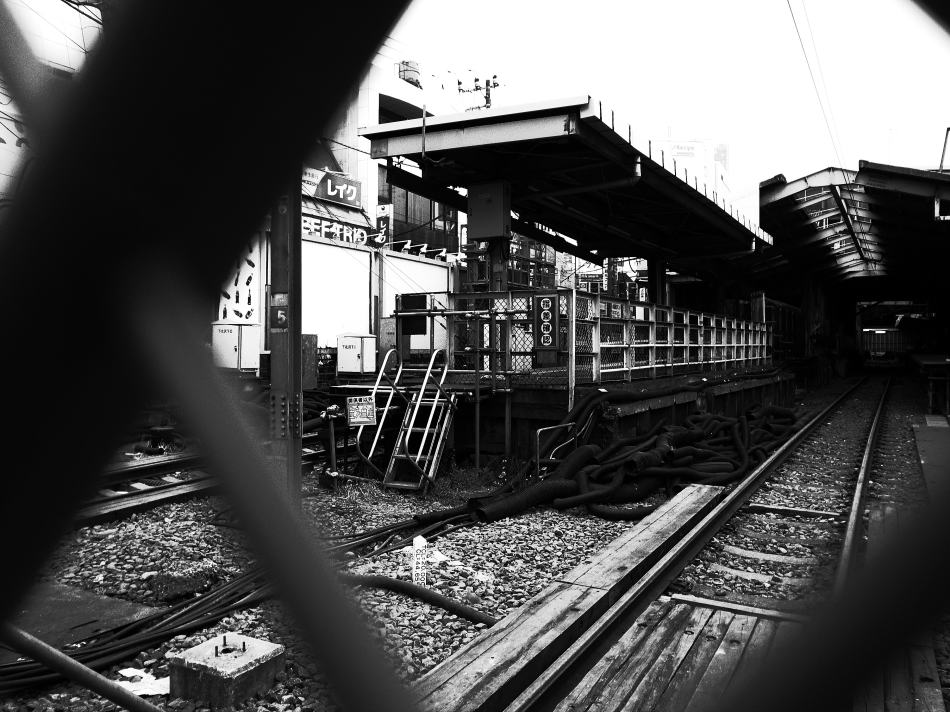 新駅の地下化で先週廃止された地上の旧下北沢駅。ちょうど駅前食品市場の一部も解体が始まったところだった。