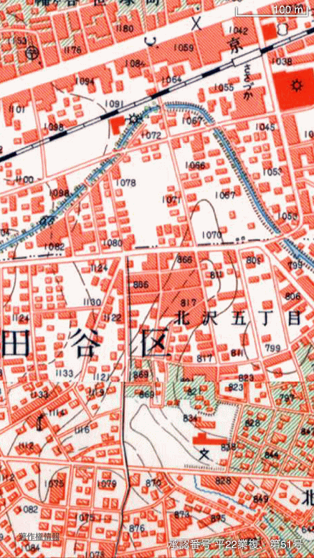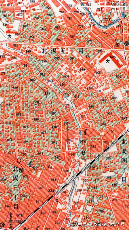 ![]() 昭和30年代の地図。への字型の川は玉川上水。等高線で見られるT字型の谷を大きく迂回していることが分る。 右下の学校(北沢中学校)から右下に延びるのが森巌寺川。地図には表記されていないものの、 T字型の谷のそれぞれに源流となる湧水地があったようだ。北沢中学校の東側の煙突の記号が小生 常湯だった月の湯(平成1年廃業)。標高42.9メートルというそこそこの標高のため川沿いの銭湯という認識は全く無かった。 |