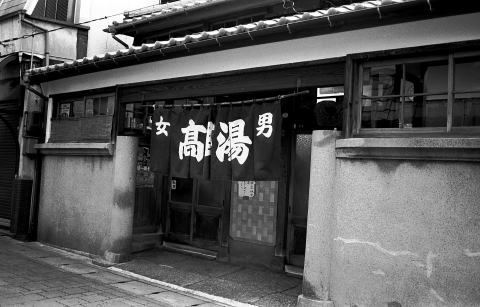 四辻に立つ小さな銭湯ながら、「高野湯」と屋号を染め抜いた立派な暖簾。