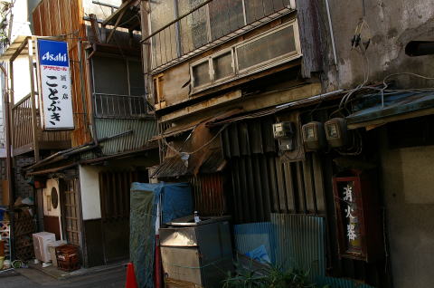| 立石(葛飾区立石) 2007.10.20 京成立石駅前に拡がる戦後生成した旧赤線地帯。すぐにオフリミットになったけど、ほんの一時期進駐軍向けの慰安施設RAAとなっていた。その後は、昭和33年まで、庶民派の赤線として発達。 「呑べい横丁」の奥に大型の建物2棟が向かい合って、その上に屋根が掛っている。赤線時代の雰囲気が濃厚に有る。 京成立石駅に初めて降りた。駅前のレトロな商店街もなかなかのものだった。レトロさが残っていてシャッターが閉まっている店も少ない。 駅前にイトーヨーカ堂の古い店舗がある。イトーヨーカ堂は千住店(昭和33年)が第1号店。立石店の開業は昭和38年6月。現在では千住店に次ぐ業歴。イトーヨーカ堂の当初の姿を最も残している感じがした。 先日(11/5)洲崎遊廓跡の「第一弁天湯」に行ったとき、大型の木場店で石鹸箱を探したが、無かった。何となくこの立石店の雑貨売り場では、売っているような気がする。 |