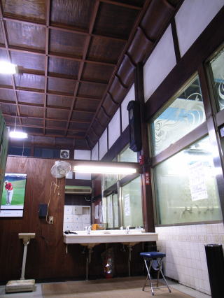 多くは、フロン部への転用で脱衣所の1/3程度を削ることが多い。ここまで大胆に、脱衣所を削った例を知らない。でも、減少した客数からすれば、脱衣所スペースは幅3間、奥行1間半もあれば、足りるのかも知れない。それと、フロントと脱衣所の境に、クランク状の通路は無く、簡素なドアというのが特徴的。それも、左右に2つある。1.jpg)