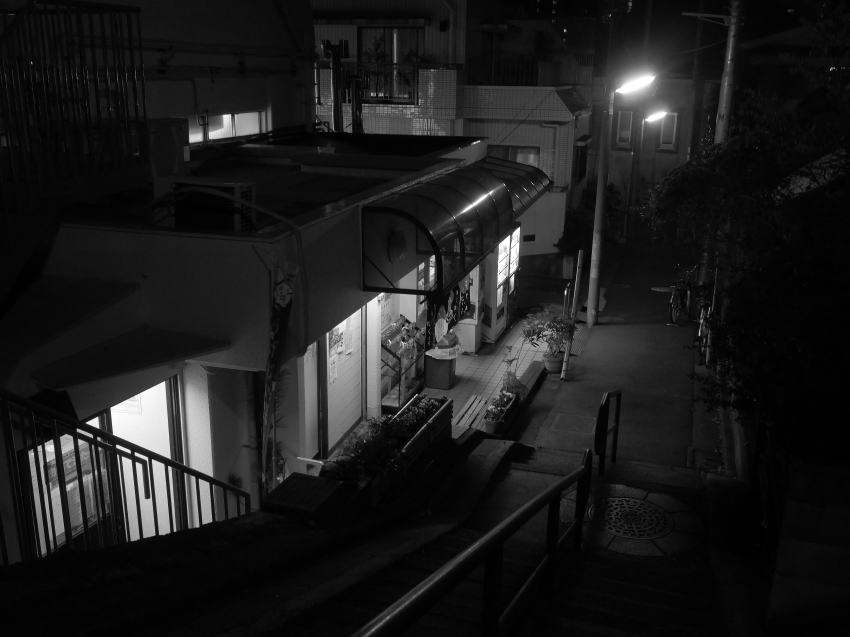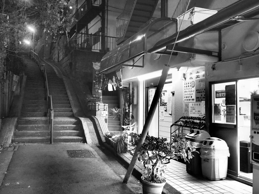 マンションの裏手に回ると、現在の同湯入口にも”山の手”と”下町”を繋ぐ階段状の急坂があっ て、坂をも含む同湯の風景は、風情と郷愁に満ちていた。