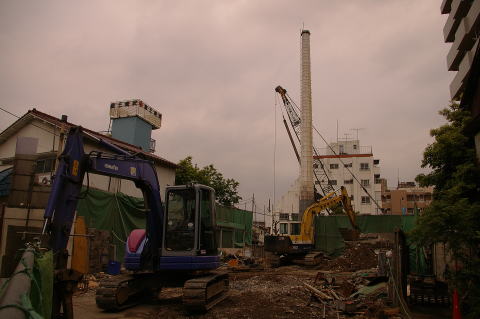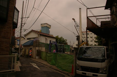 休業中との情報を得ていたものの、訪れるとまさに解体現場だった。 煙突と外壁、カラン台、奥壁の一部が無残に一部だけ残っていた。解体現場に遭遇するのは初めて。 4月22日付の建築標識では、駅から近いからかワンルームマンションになるようだ。 施工者は銭湯を多く手がけ自らも運営する鈴和建設。しかし、銭湯が併設されるような情報は含まれていなかった。 《S59.11.18撮影》