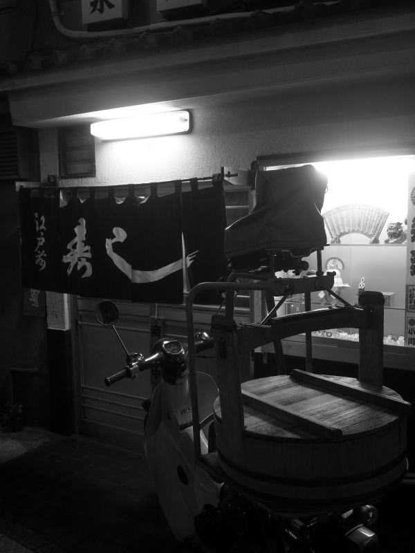 ![]() 同湯斜向かいの永楽寿司。ショウィンドウの”砂利場”とは神田川岸のこの辺りの地名。 |