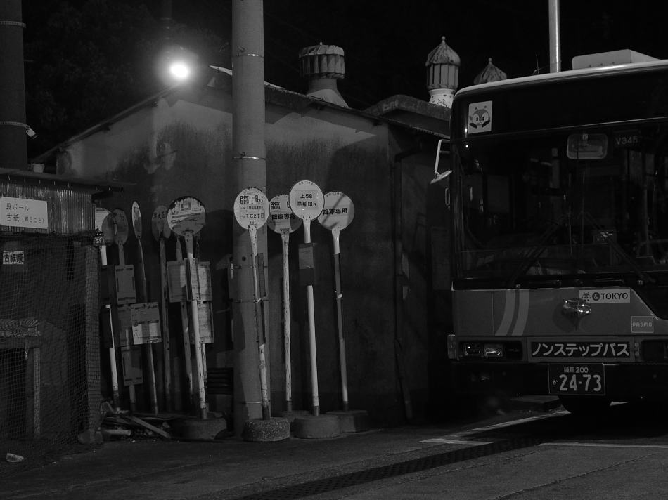 ![]() 都バスの早稲田営業所。バス停の”墓場”があった。 |