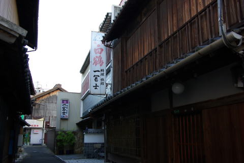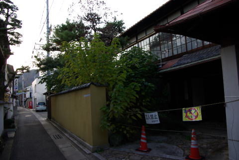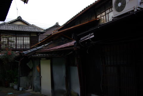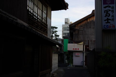 | 善通寺・砂古遊廓跡(香川県善通寺市) 2007.12.16 砂古遊廓は、善通寺門前に広がっていたようだ。開祖の弘法大師も思いもよらない展開だったと思う。 廓内の大正湯は、この10月の初めに店を畳んだ。コンクリ煙突も建物もそのまま残っている。縦窓の洋館風のファサードの銭湯だった。 ※掲示板に書き込み頂いた情報です。これらの写真は、砂古遊廓跡とは異なるようです。。。(2009.0516.記) > てっきり、旧大正湯があったあたりが旧遊廓だと思っていたのですが、違ったのでしょうか。。。 貴兄が写されたのは、善通寺参りで賑わった頃の、門前旅館や飲食店等の町並みで、砂古浦町遊郭は町はずれの現在地名では北西山あたりになるとのことです。 |